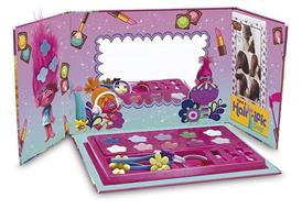 TROLLS - LIBRO MAKE UP Con il Set Trucchi di Trolls tutte le bambine possono creare make-up di tendenza come quelli visti nel film animato. Il libro si apre per lasciare spazio ad innumerevoli accessori per il trucco: uno specchio, una trousse che include: 4 ombretti, 4 lucidalabbra, 2 fard, 2 extension per capelli, 3 accessori per capelli, 3 applicatori, 1 specchio. Le bambine troveranno anche una tabella con pratici consigli per il trucco. I cosmetici sono conformi alle attuali norme sulla sicurezza e facilmente rimovibili con acqua. Originale idea regalo per tutte le bambine amanti del Make Up.