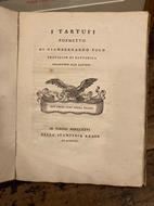 In-4° antico (24x18 cm), pp. (8) 47 (1) bianca; LV (1) binca, cartonatura d' attesa muta coeva, dorso posterioremente rinforzato in carta da zucchero. 2 parti con autonomo frontespizio e autonoma numerazione (la prima col testo latino, la seconda con la traduzione italiana). Imprese tipografiche ai frontespizi con un'aquila che regge un cartouche con il motto "Non omnis fert omnia tellus". Una vignetta incisa alla p. 1 raffigurante dei cercatori di tartufi. Firma di possesso coeva al frontespizio. Più che buon esemplare marginoso e croccante, esente da fioriture. Prima edizione, rarissima. Giovanni Bernardo Vigo (Corio, 1719-Torino, 1805), oggi noto soprattutto come autore di questo poemetto latino ispirato ai tartufi, nel 1778 fu nominato professore di eloquenza italiana e di greco a Torino e, due anni dopo, di eloquenza latina. Non solo l'opera del Vigo è la prima dedicata alla raccolta dei tartufi in Piemonte, ma descrive altresì la zona di produzione compresa fra il Po e la Bormida. Cfr. Vicaire, 864. Paleari Henssler, n. 1008. Westbury, p. 223. B.I.N.G., 2042 e 2043. Niccoli, Saggio storico e bibliografico dell'agricoltura italiana, p. 226. NUC, 637, 285. BNP, 209, 465. Marciana, 1680.