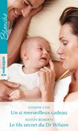Un si merveilleux cadeau, Connie Cox Le soulagement de Désirée est immense : sa candidature au poste d’infirmière du cabinet médical de Piney Wood a été acceptée. Enfin, sa nouvelle vie peut commencer ! Une seule ombre au tableau : elle ignore comment son nouveau patron, le Dr Jordan Hart, réagira lorsqu’il apprendra qu’elle est enceinte. Dans le doute, mieux vaut lui cacher son état… pour le moment. Sauf qu’à son arrivée, elle découvre, stupéfaite, qu’elle va devoir cohabiter avec lui. La panique l’envahit alors : dans ces conditions, son secret risque bien d’être dévoilé beaucoup plus tôt que prévu… Le fils secret du Dr Wilson, Alison Roberts Devant le Dr Rick Wilson, Sarah retient son souffle. Elle a cherché pendant des mois cet homme à qui elle doit révéler qu'il a eu un fils : le petit Josh, qu'elle aime plus que tout au monde depuis qu'elle est sa tutrice. Mais comment annoncer l'incroyable nouvelle à ce célibataire endurci qui passe pour un play-boy invétéré ? Comment, surtout, lui faire comprendre que le temps presse ? Car elle doit lui apprendre non seulement qu'il a un fils, mais aussi qu'il est le seul, aujourd'hui, à pouvoir le sauver...
