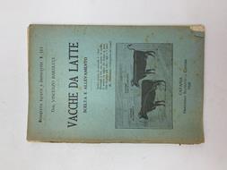 In 16 (cm 12 x 18,5), pp. 57 + (3) + (3) di pubblicita' editoriali + (1 bianca) con illustrazioni in nero intercalate al testo. Brossura editoriale. Fa parte della collana "Monografie agrarie e zootecniche". Sono prese in esamele razze di mucche da latte Bruna delle Alpi e Olandese pezzata nera connozioni sulle stalle, alimentazione degli animali, cause che influiscono sulla composizione del latte, mungitura, ecc... In appendice: vacche burriere; potenzialita' lattifera; uso delle schede per la classificazione delle lattifere; correzioni da farsi alla produzione lattea; ecc...
