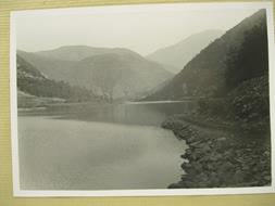 Cinque fotografie originali vintage in b/n, stampa ai sali d'argento, didascalie manoscritte al verso. Tre foto sono sono montate ciascuna su un cartoncino bordato cm 34 x 24,6. La prima misura cm 23,7 x 17,5 e ritrae un uomo in posa su una strada che costeggia la diga tra i due laghi Lavagnina (quello superiore e quello inferiore); la seconda misura cm 17,5 x 23,5 ritrae una donna semicoricata sulla sponda del lago inferiore con un fornelletto da campo e alcune stoviglie. Di fronte a lei e' parcheggiata la motocicletta, mezzo di trasporto della coppia in viaggio; la terza foto misura cm 17,4 x 12,4 ritrae la donna in posa. Dietro a lei un fienile in legno, di fianco il lago inferiore e l'immancabile motocicletta; la quarta foto misura cm 17,3 x 12,3 montata su un cartoncino bordato cm 22,7 x 17 e ritrae una bella veduta del lago superiore della Lavagnina; la quinta foto misura cm 8,7 x 13,7 montata su un cartoncino bordato cm 16,4 x 22,7 ritrae uno scorcio de lago inferiore della Lavagnina con la donna in piedi che guarda di lato verso il lago.