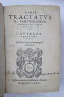 Cm. 19, pp. (104) 963 (1). Grande stemma xilografico al frontespizio ed al verso dell'ultima carta e capolettera figurati. Leg. coeva in piena pergamena rigida con titoli manoscritti al dorso. Qualche rada arrossatura marginale, piccole mancanze superficiali alla legatura e macchiette, ma complessivamente esemplare genuino ed in discreto stato di conservazione. Raccolta di trattati del celebre giureconsulto Bartolomeo Cipolla che comprende oltre al "De servitutibus", il "De usucapione", il "De simulatione" ed il "Tractatus cautelarum".