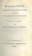 Wallstein, tragédie en cinq actes et en vers, précédée de quelques réflexions sur le théatre allemand et suivie de notes historiques. Copia autografata - Benjamin Constant - copertina
