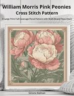 William Morris Pink Peonies Cross Stitch Pattern: A Large Print Full Coverage Floral Pattern with Multi-Brand Floss Chart - Simone Balman - cover