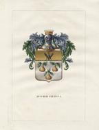 Lodi, Wilmant e figli, 1841-1848, in-4, privo di brossura, pp. [6]. Con due stemmi accuratamente miniati a mano all'epoca, in vividi colori, con particolari dorati, su due tavole f.t. Fascicolo a fogli sciolti, dedicato alla storia della famiglia, tratto da Teatro araldico, ovvero Raccolta generale delle armi ed insegne gentilizie delle piu illustri e nobili casate che esisterono un tempo e che tuttora fioriscono in tutta Italia di Leone Tettoni e F. Saladini, Lodi, Wilmant e figli, 1841-1848. Ottime condizioni.